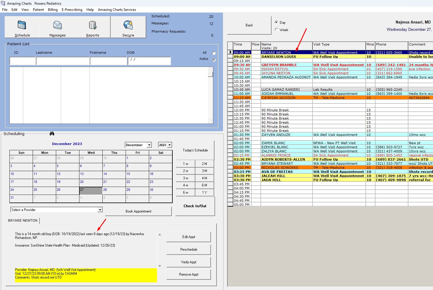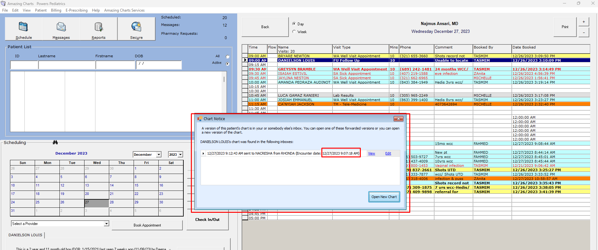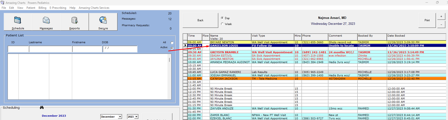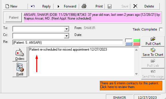a. Select the patient and check in the bottom left to see if patient was signed off on the in progress date.