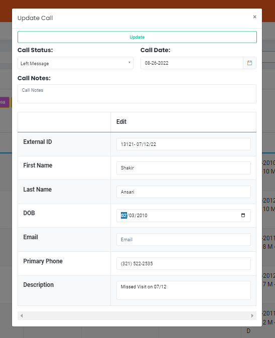 Call Status: Left Message (IF VM LEFT) - Not Picked Up (IF NO VM LEFT)