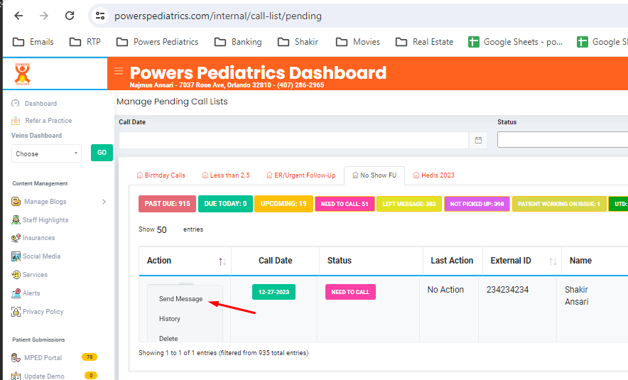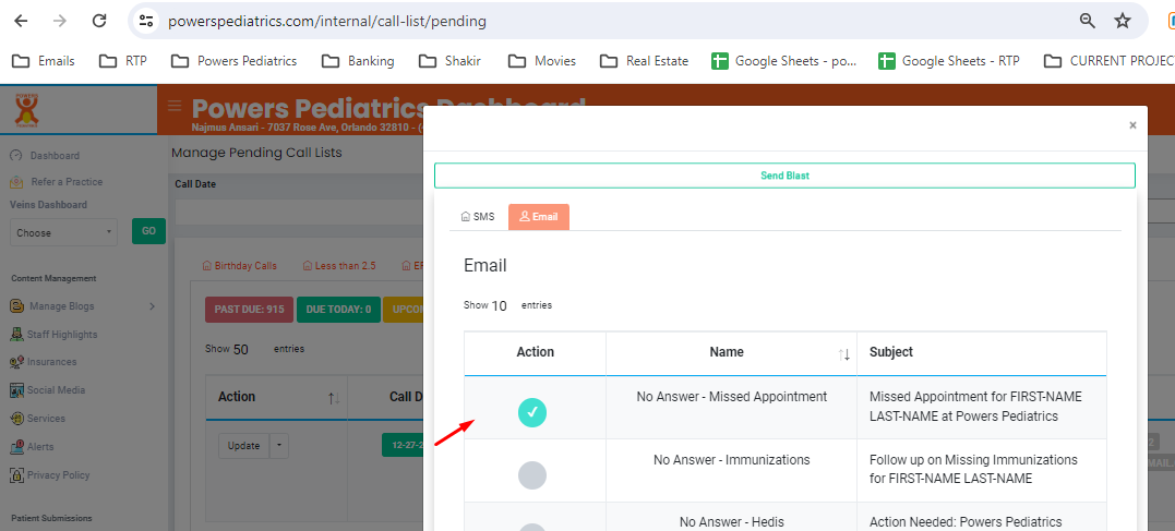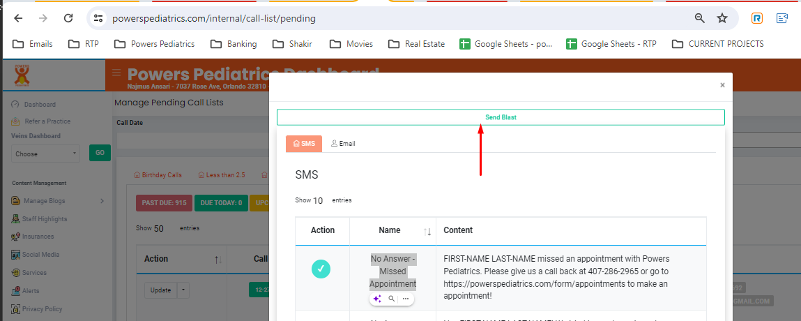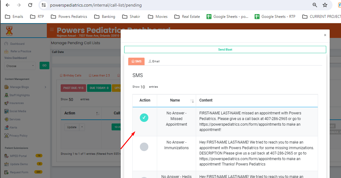 16. Select "No Answer - Missed Appointment" for SMS and Email